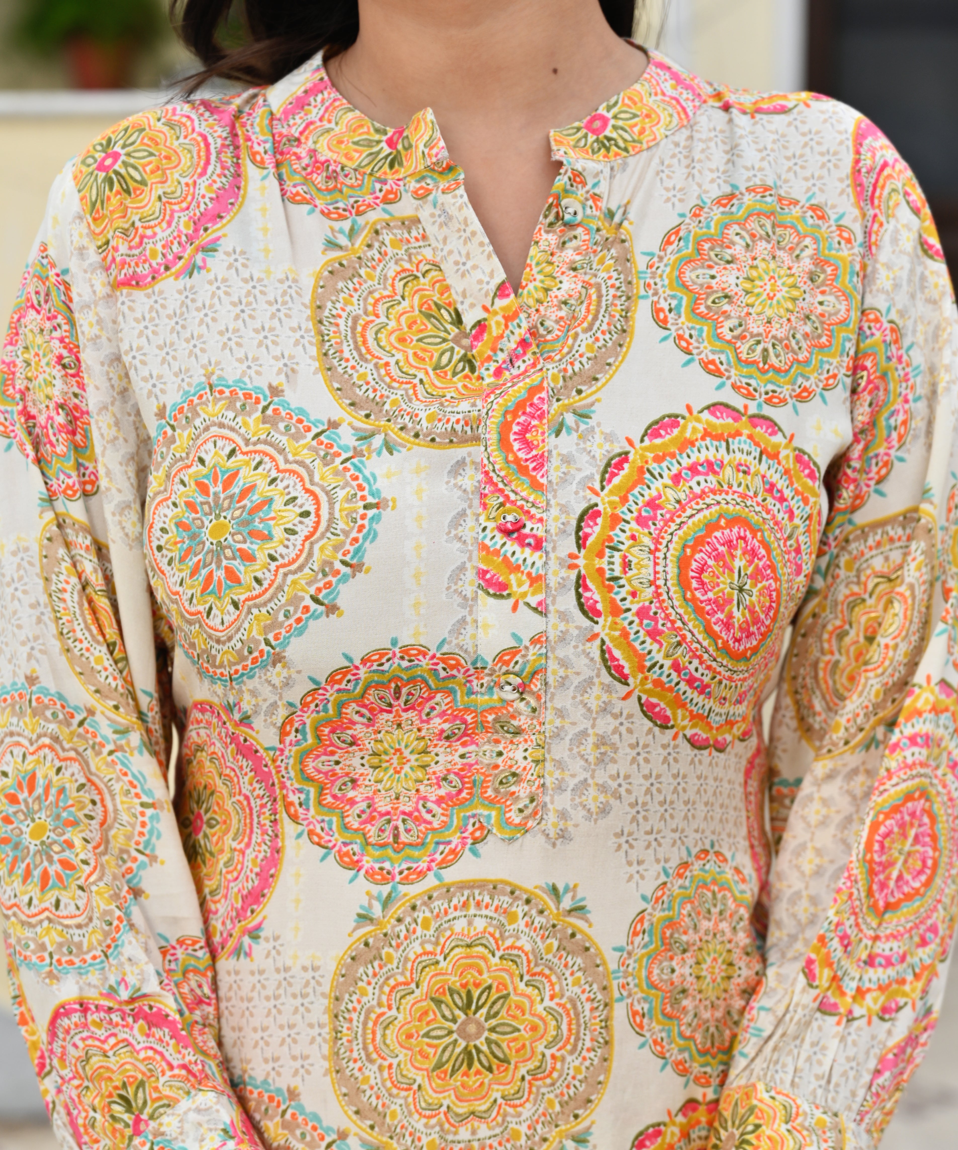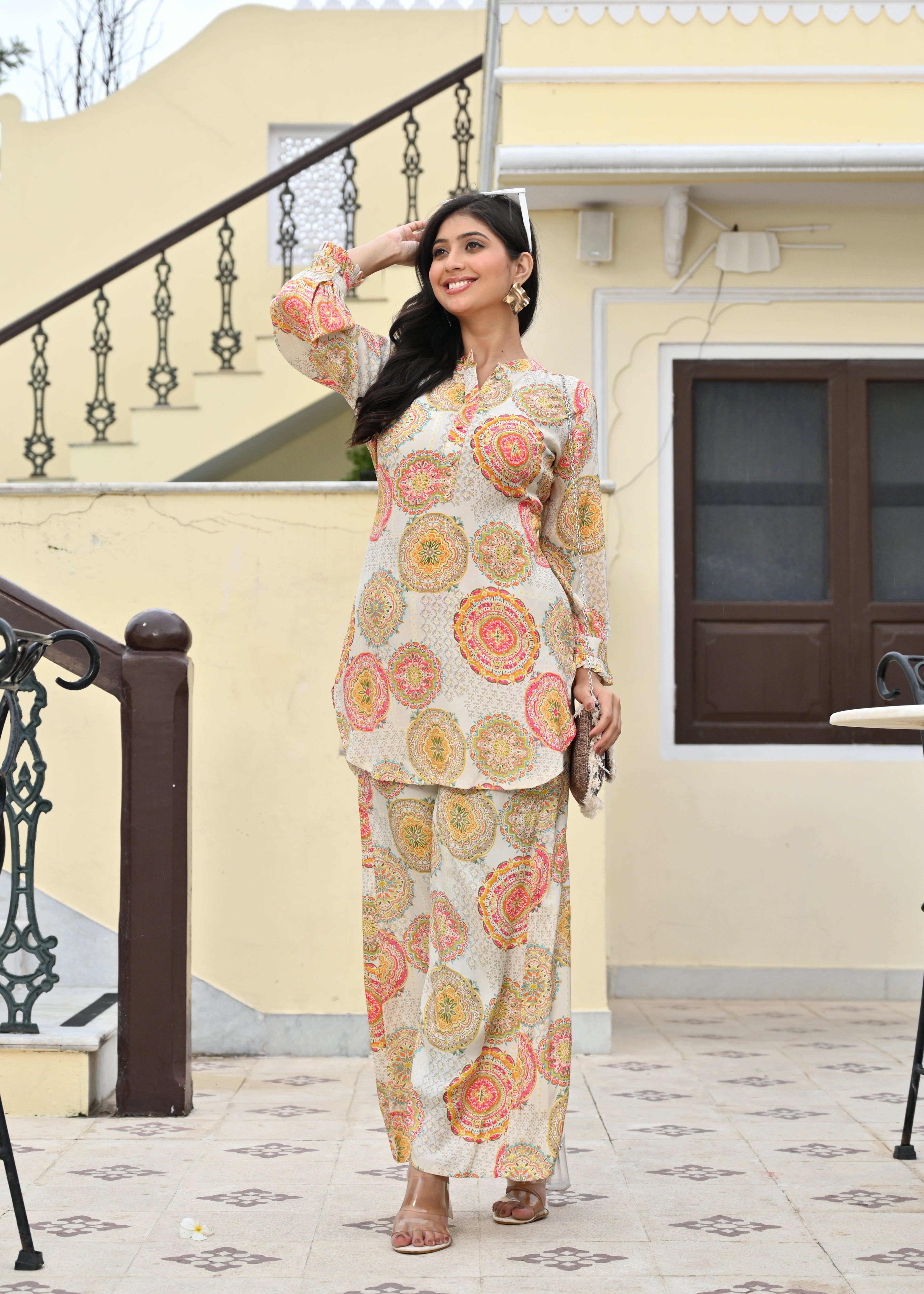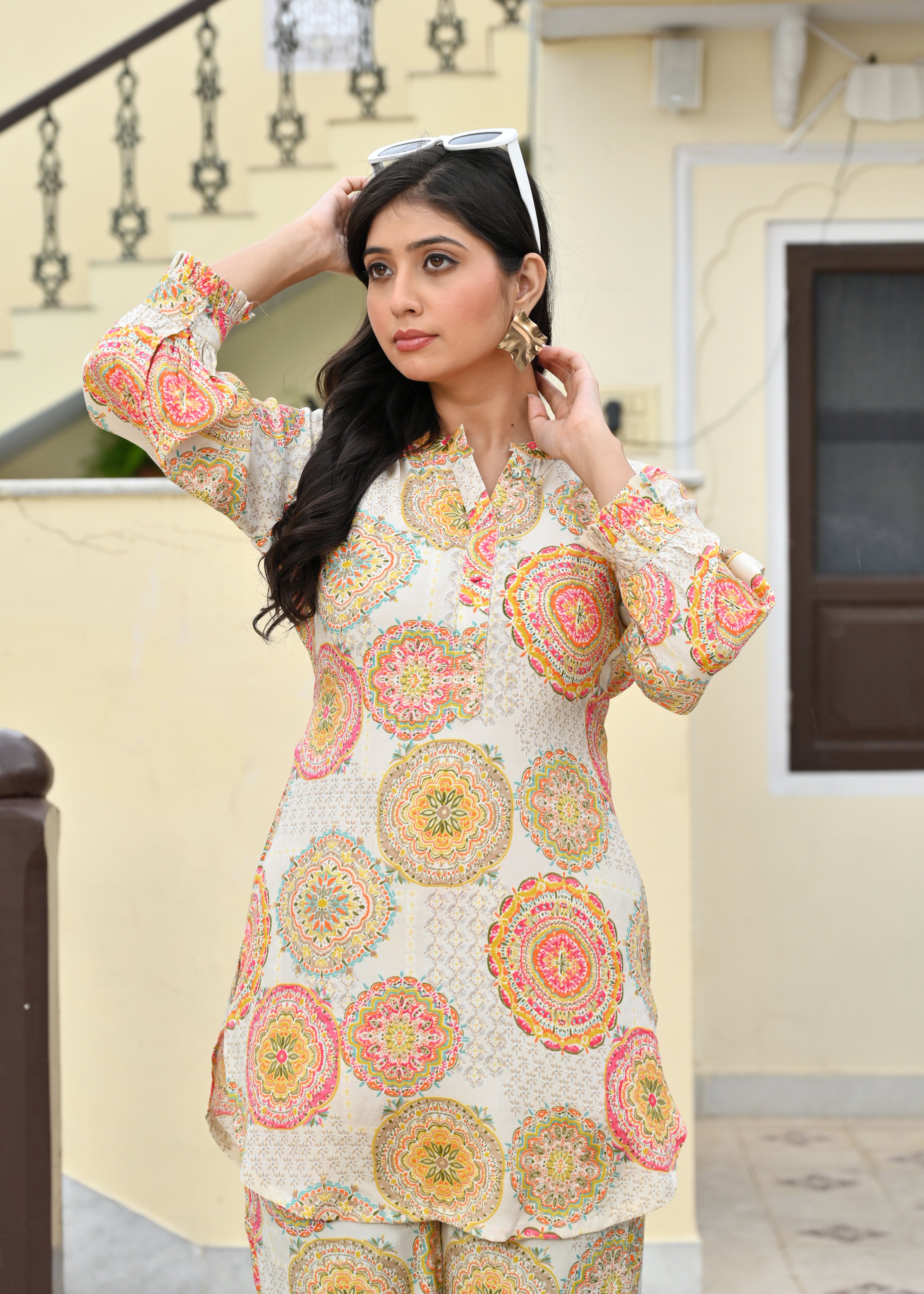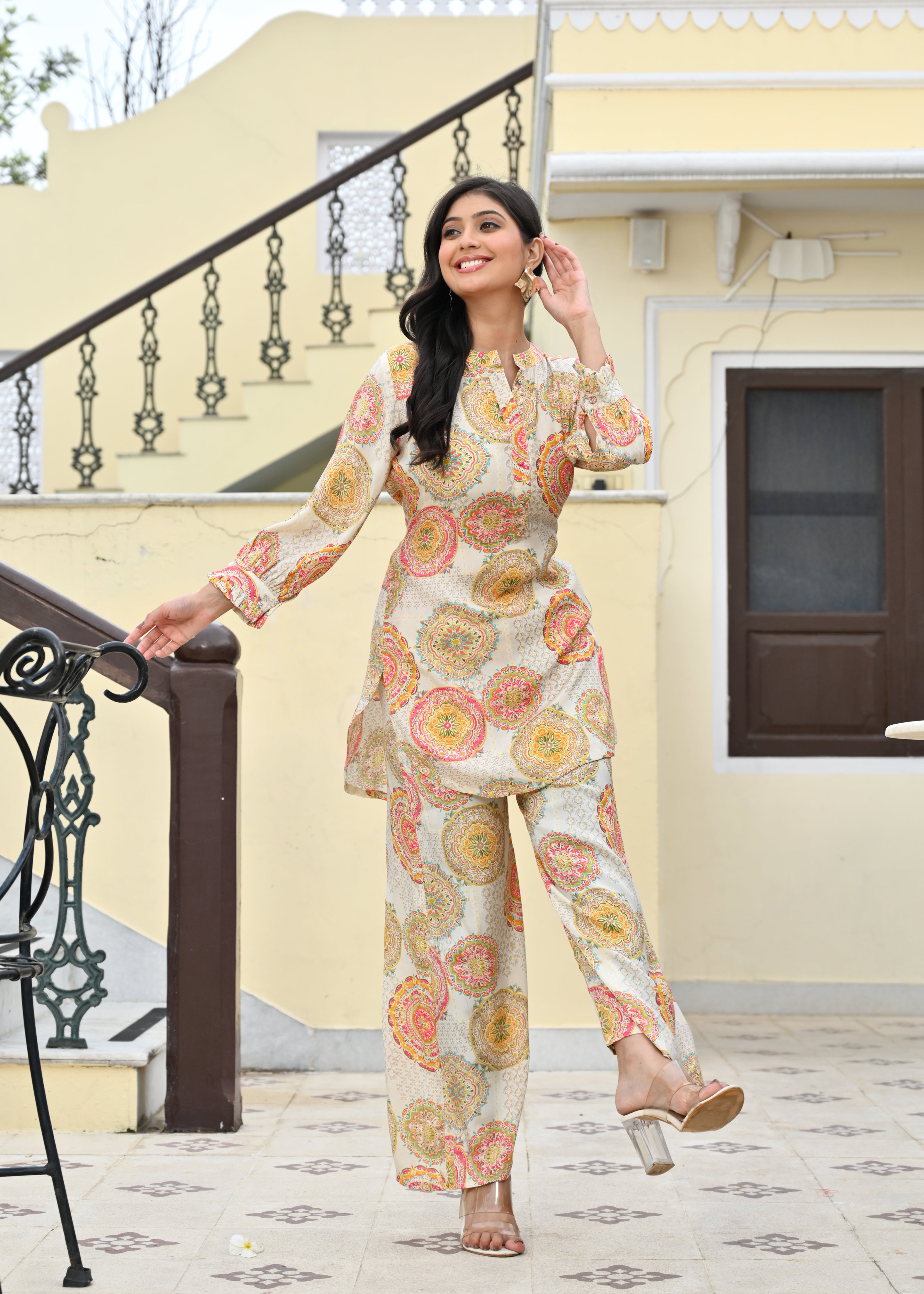 Embrace elegance and comfort with Belveera’s White Mandala Print Co-ord Set, a perfect fusion of traditional art and modern style. Crafted from premium pure viscose fabric, this ensemble offers a lightweight, soft, and breathable feel for all-day wear. The intricate mandala print on a pristine white base adds a serene yet statement-making charm. Designed with a relaxed silhouette, this coordinated set is ideal for brunches, casual outings, or resort vacations — ensuring you stay effortlessly stylish wherever you go.