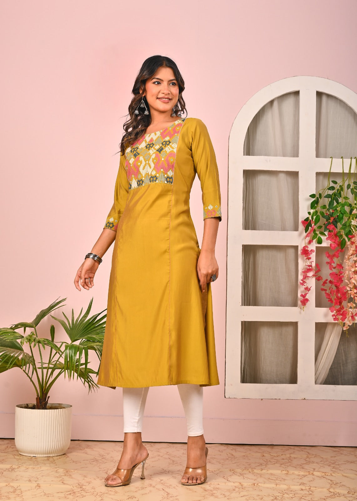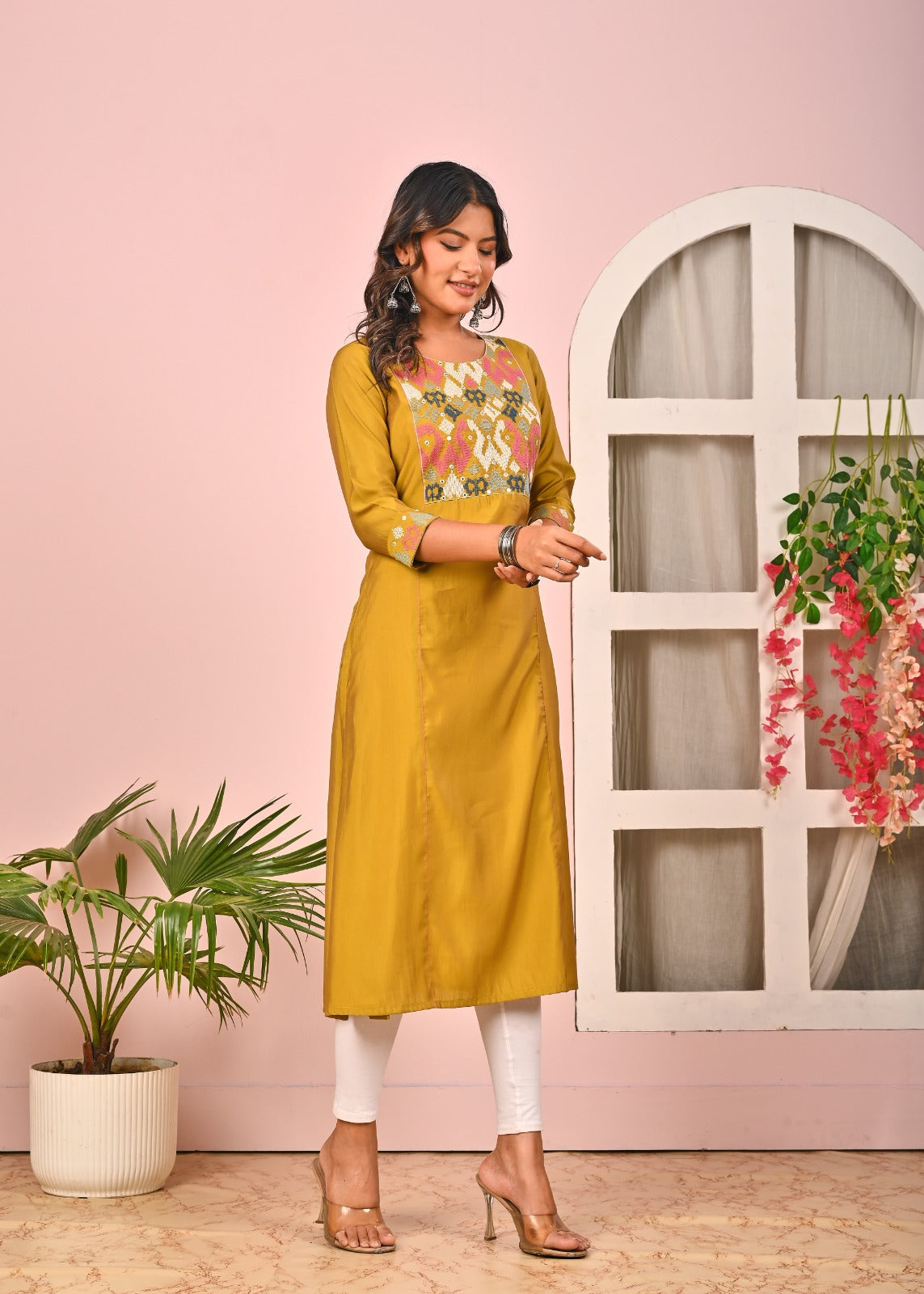 Design: Women’s embroidered kurta with fine detailing for a graceful look