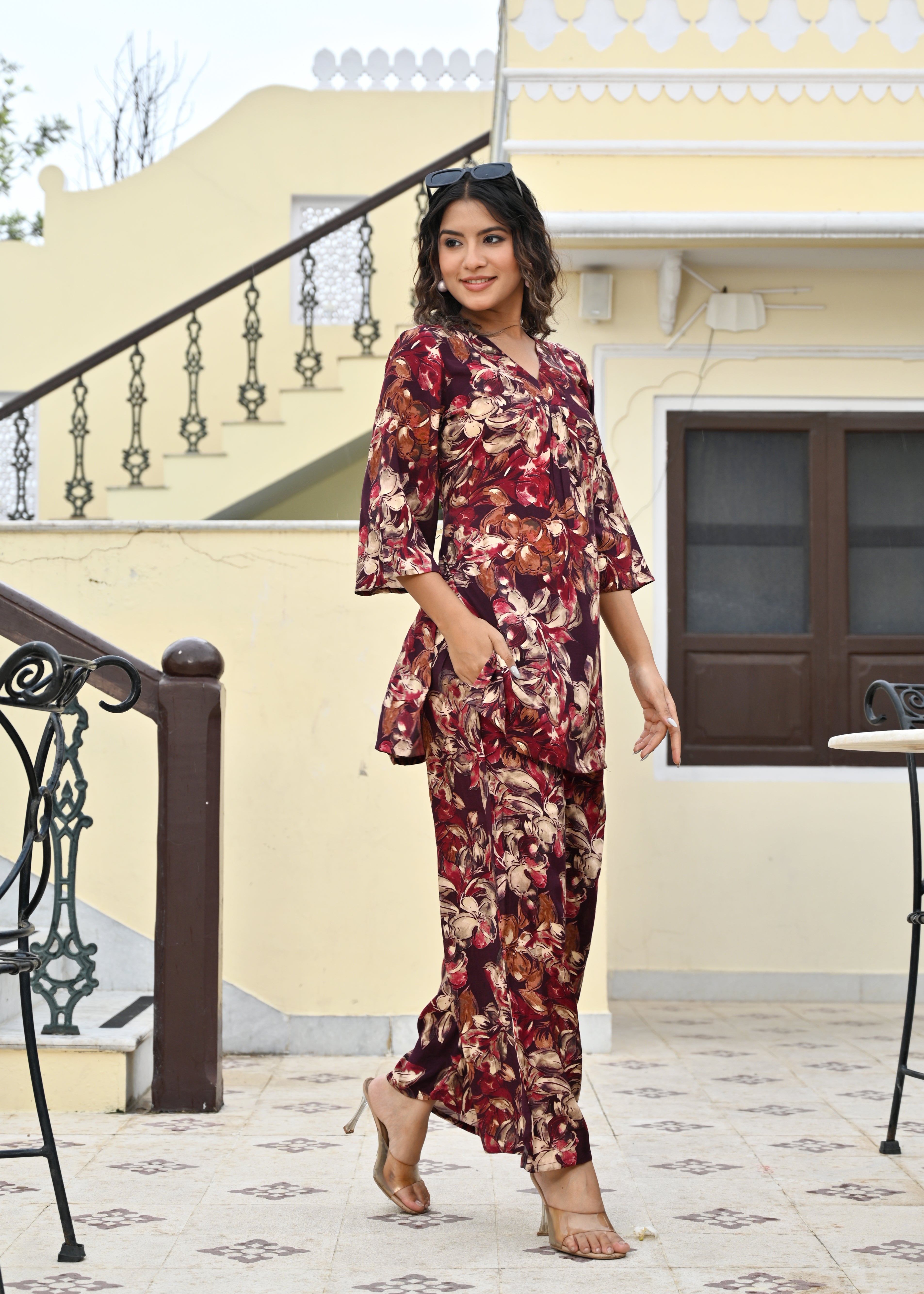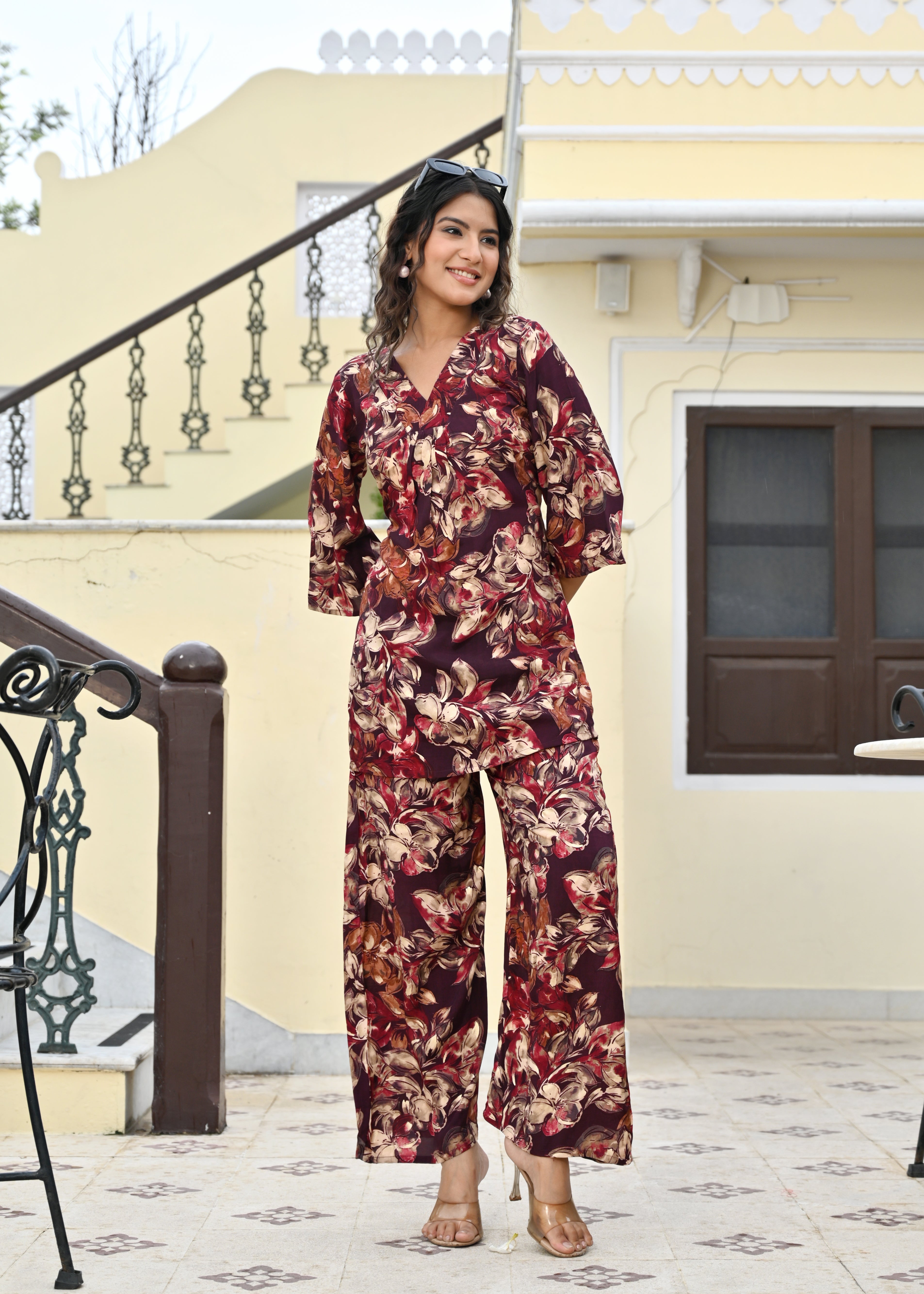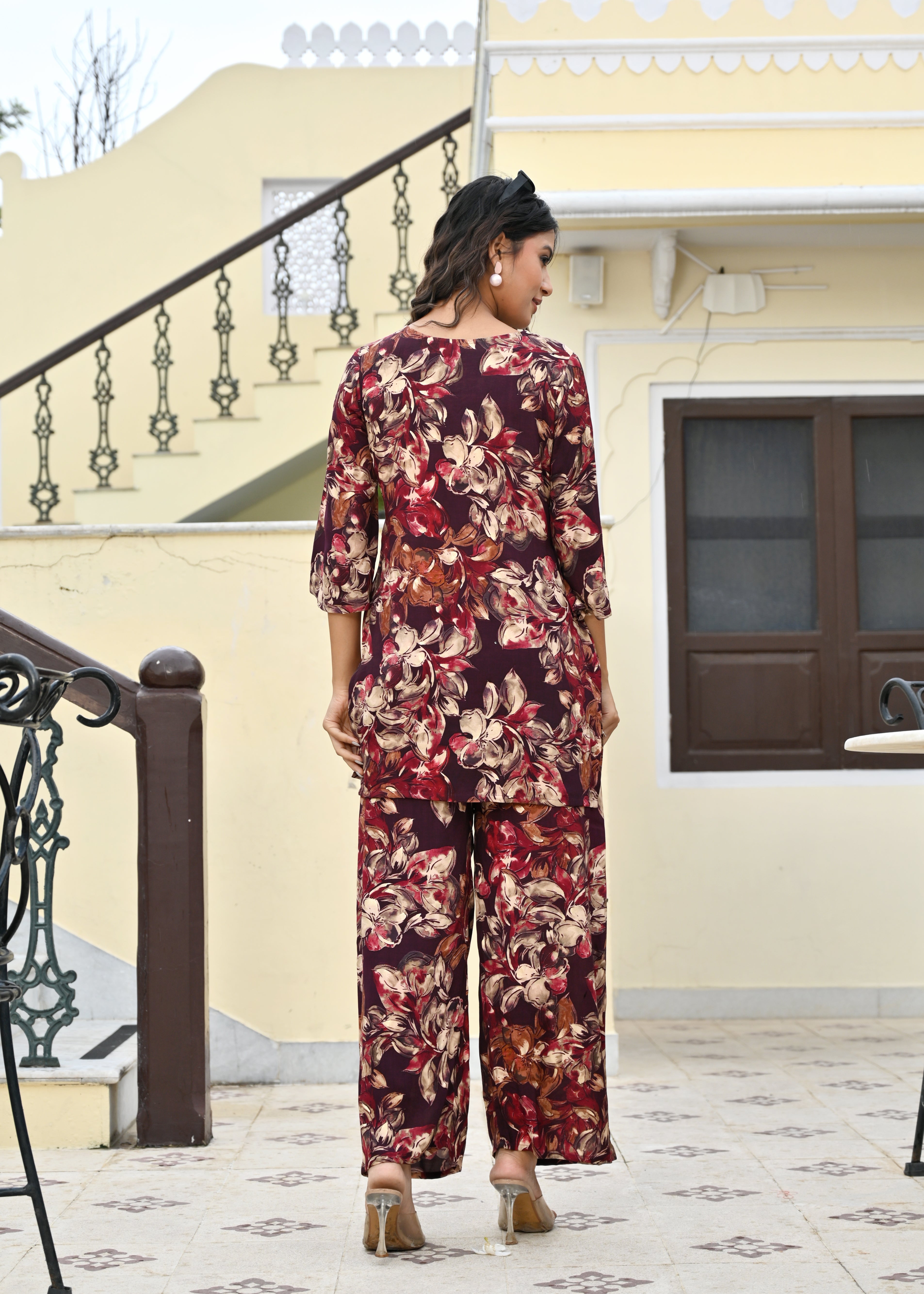 Brighten up your look with Belveera’s Red Floral Co-ord Set — a perfect blend of elegance, comfort, and modern charm. Crafted from premium pure viscose fabric, this ensemble offers a soft, flowy, and breathable feel for all-day comfort. The vibrant red base enhanced with delicate floral prints adds a refreshing and feminine touch. Designed as a coordinated top and bottom set, it delivers effortless style — ideal for brunches, festive gatherings, or casual outings. Step out in confidence and grace with this timeless floral piece.