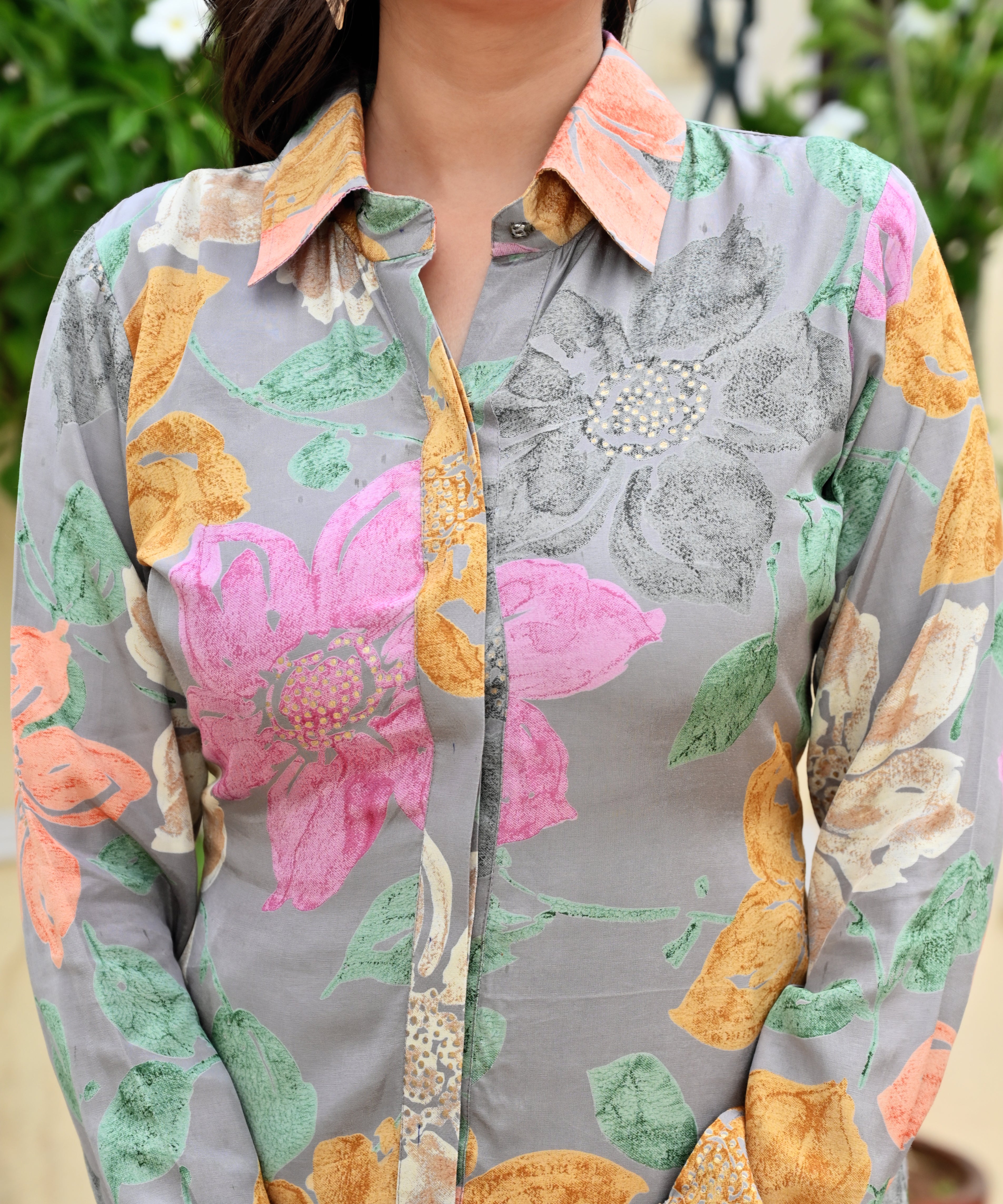 Color: Grey with Multicolour Floral Print