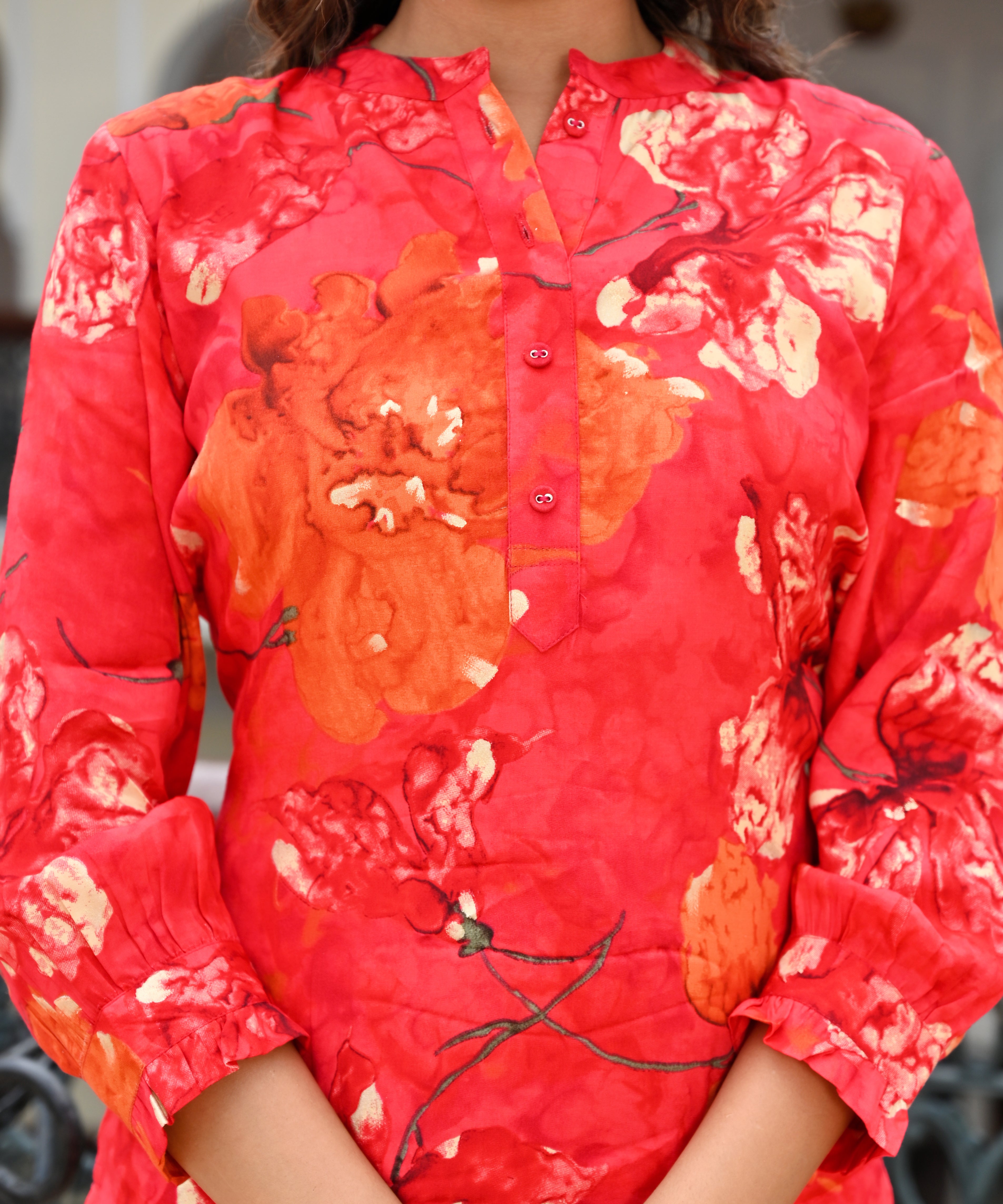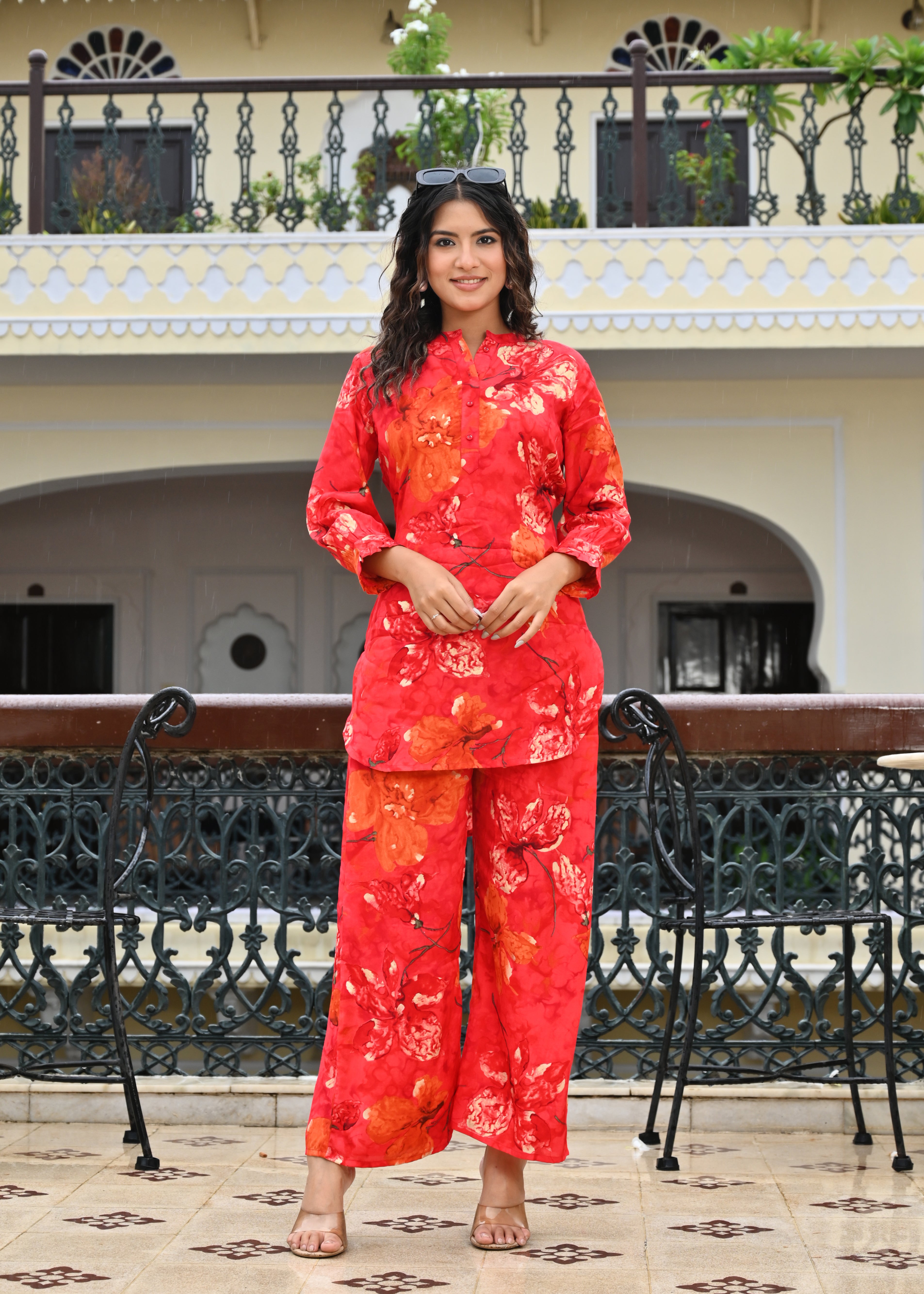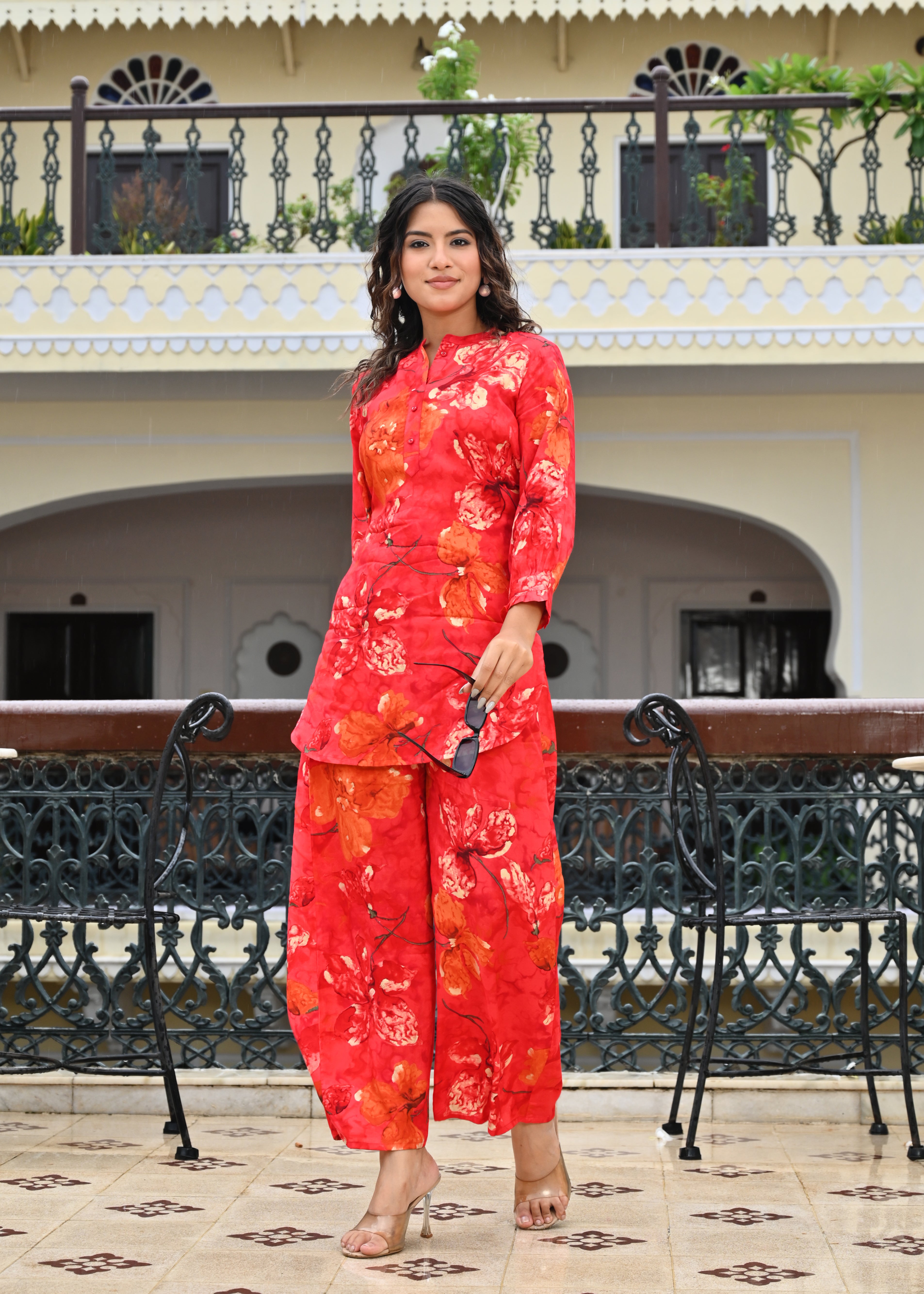 Turn heads in Belveera’s Red Floral Premium Digital Print Co-ord Set, a perfect blend of elegance and comfort. Crafted from high-quality fabric with a luxurious drape, this outfit features a striking red base adorned with vibrant floral digital prints that add a touch of charm and sophistication. Designed for the modern woman, the co-ord set includes a stylish top and matching bottoms that offer effortless coordination and a flattering fit. Ideal for brunches, festive occasions, or casual outings — this ensemble is your go-to for a chic yet comfortable statement look.